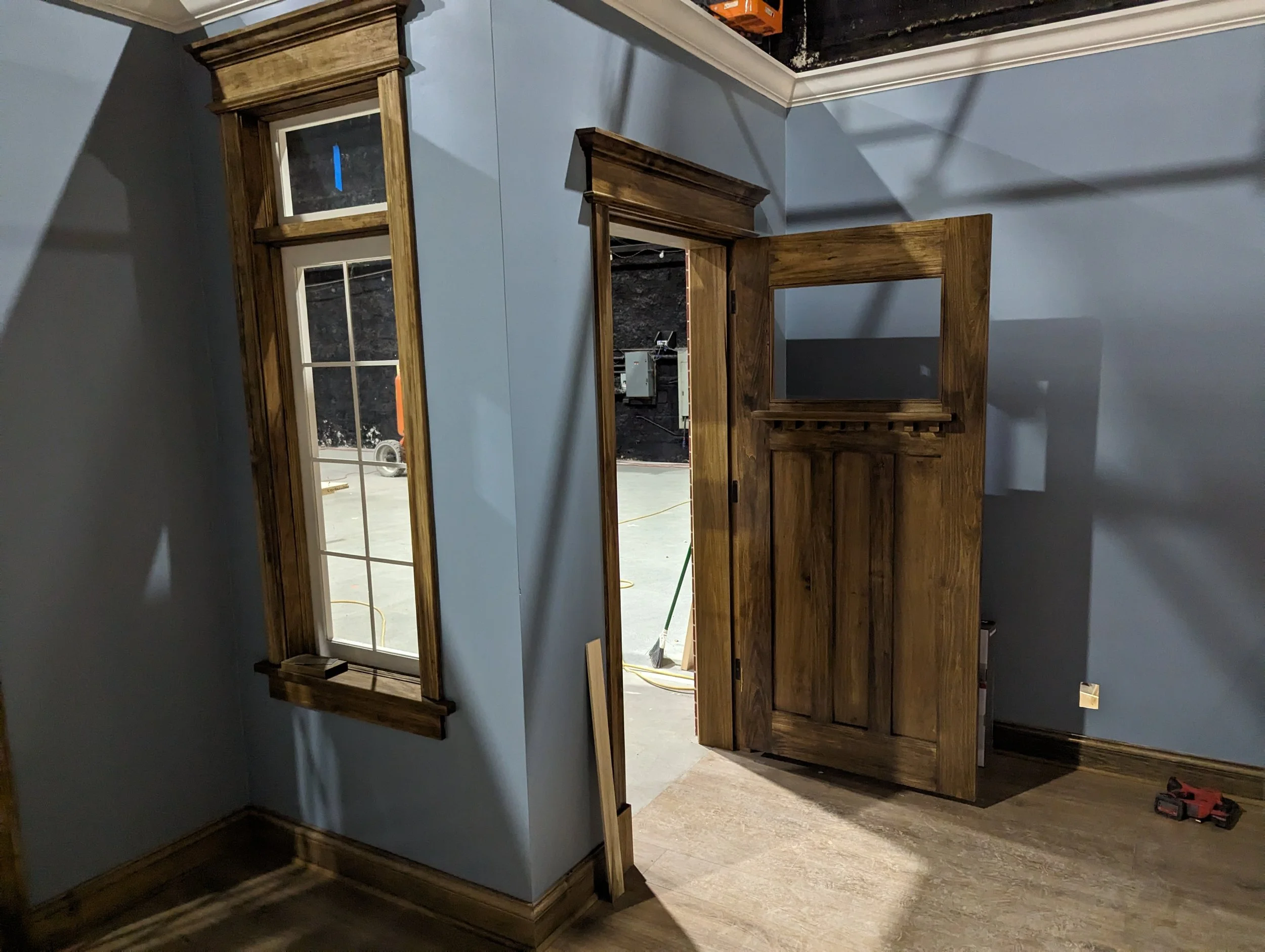 The set needed to match the front of a location exactly, as well, replicating the front door and windows.